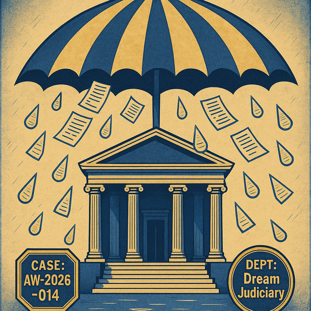 From drizzle to debate, the Legislative Umbrella shapes policy and precipitation alike. The Dream Judiciary archives its peculiar effects on damp jurisprudence.