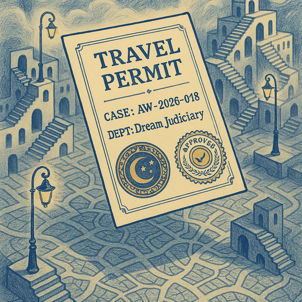 Notice of pending authorization for inter-reality transit under the Dream Judiciary.