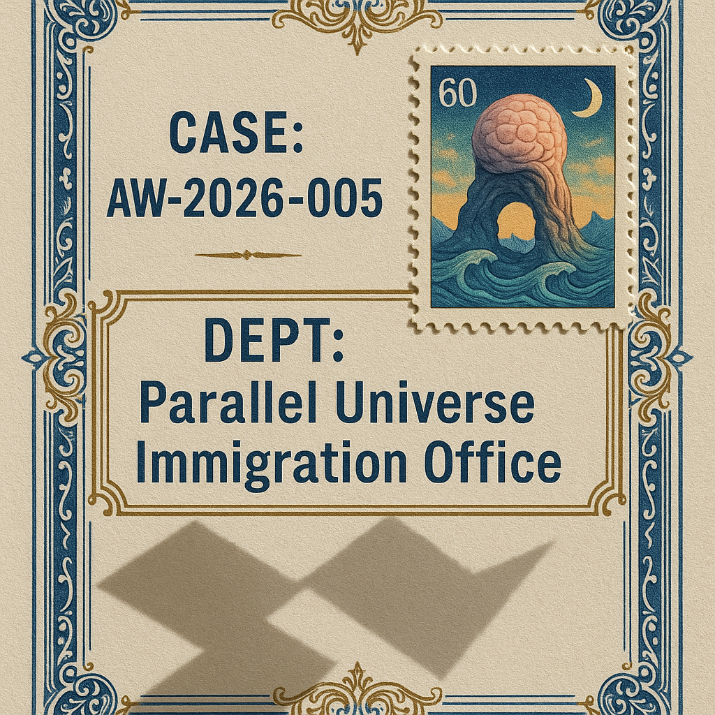 Visas, passports, and relocation documents between realities.